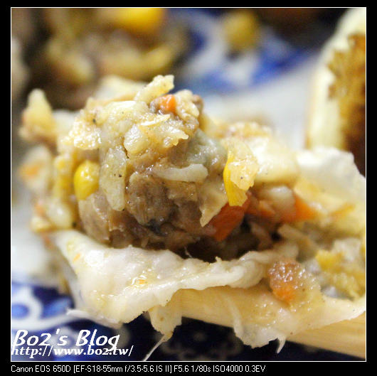 糯米糰子裡頭包的是素肉,這是最不像素食的一道。