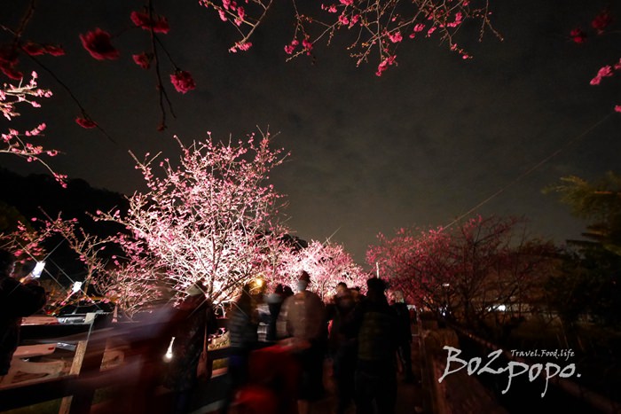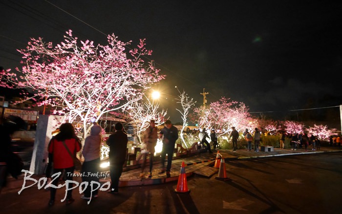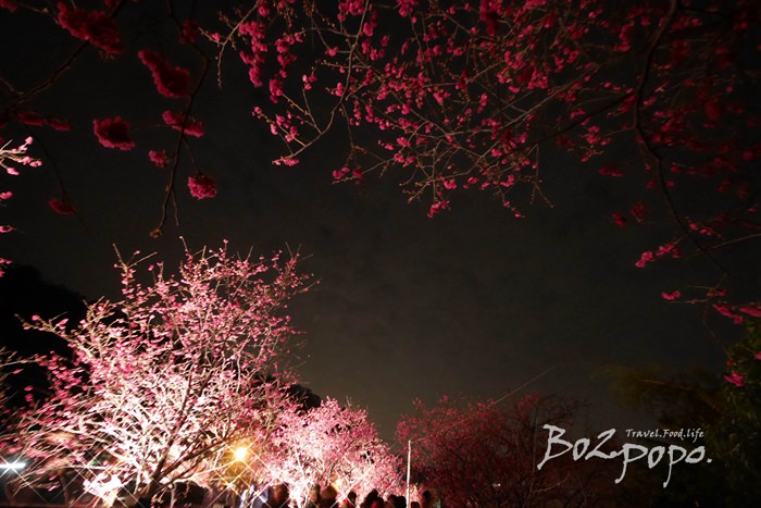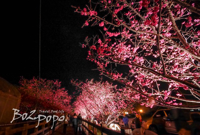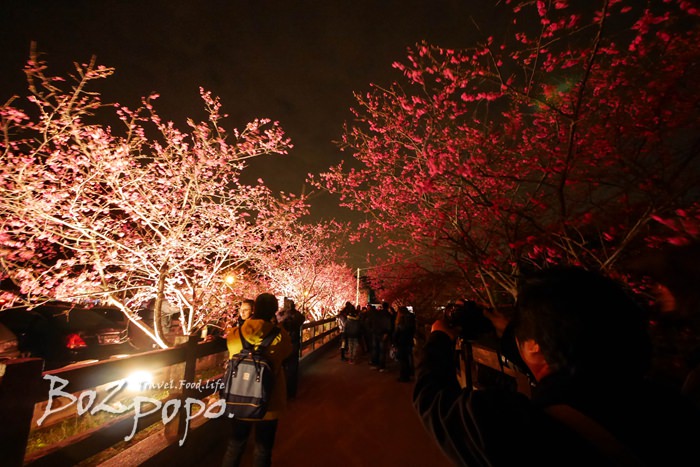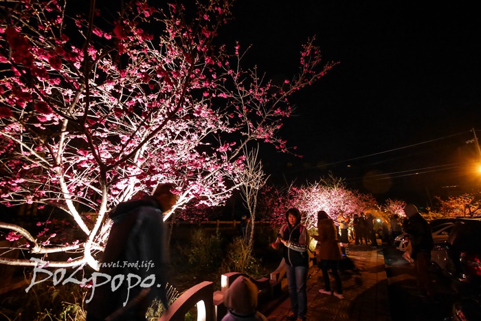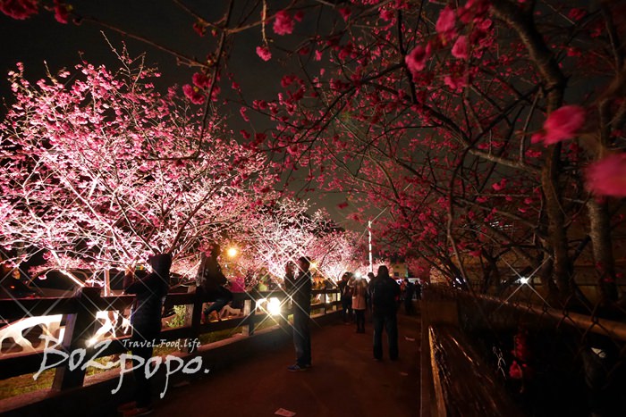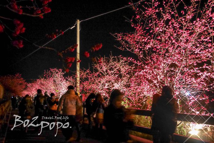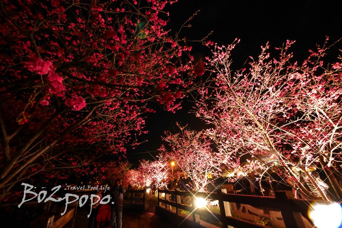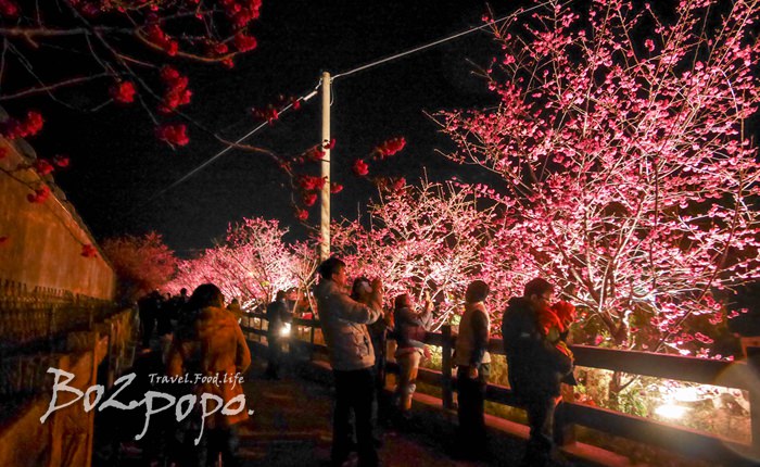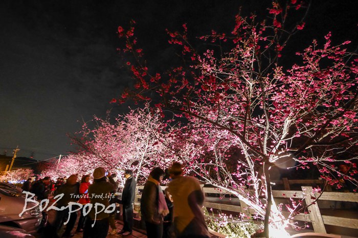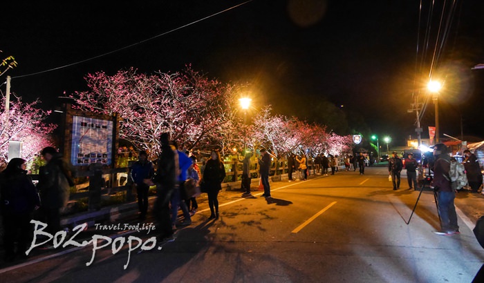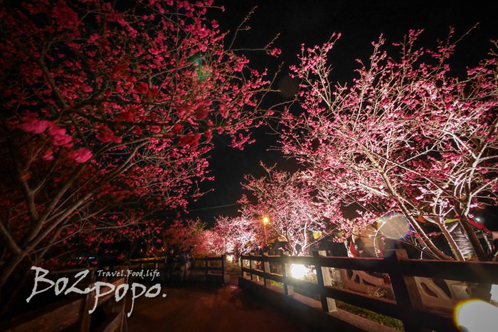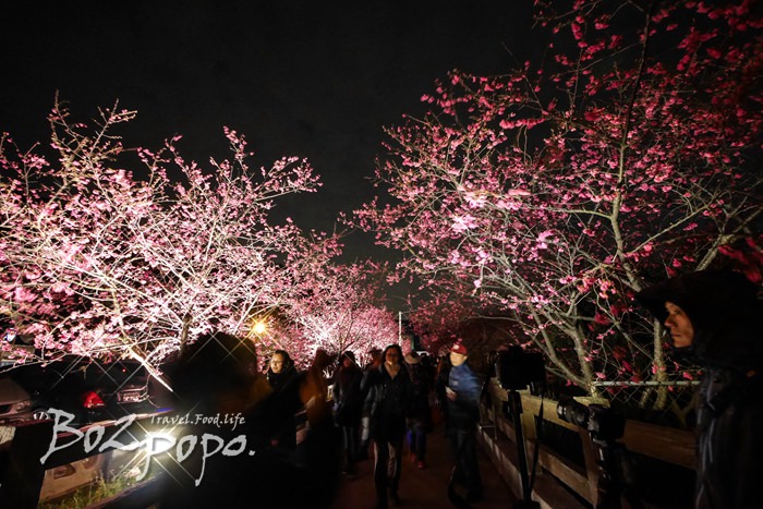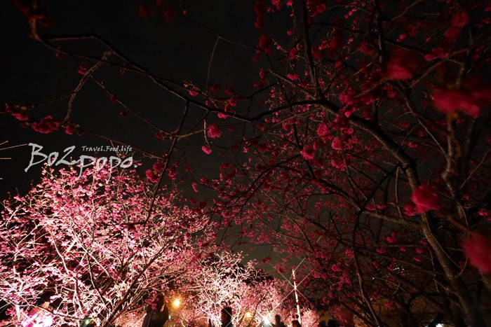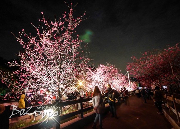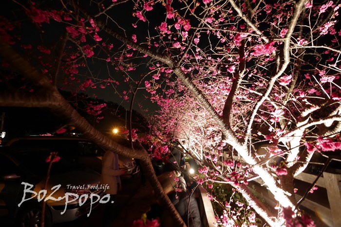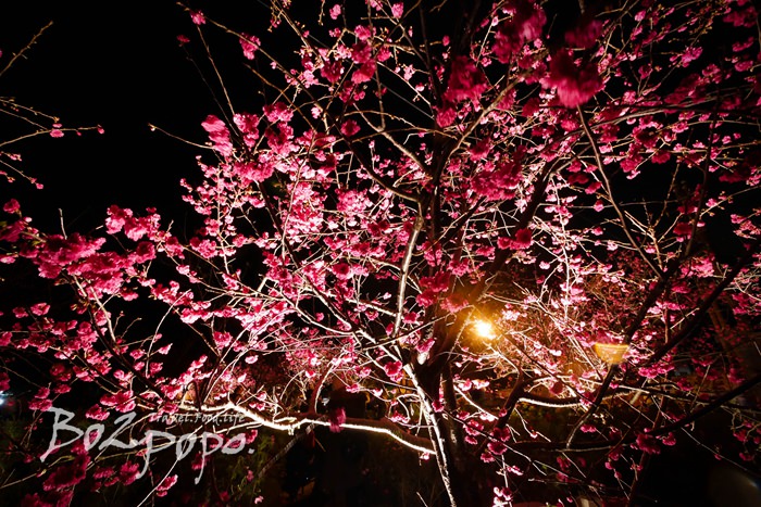 有別於九族夜櫻是在櫻花湖畔,有水的倒映加持。