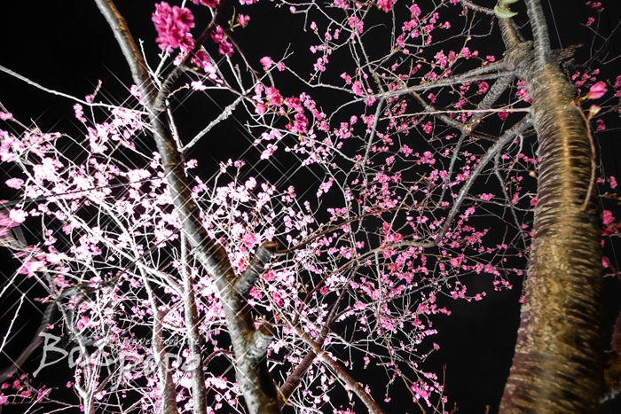 泰安的夜櫻則是很單純的燈光投射,兩者是不一樣的感覺。
